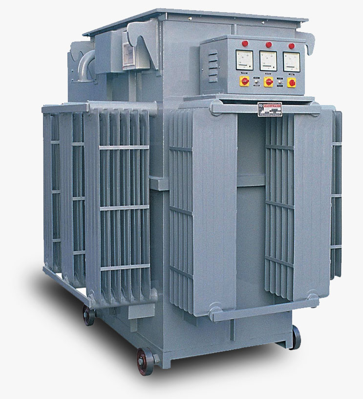 The Buck/Boost and Regulator Transformer winding are built from paper covered electrolytic copper strip or enamelled copper conductor (Dried in oven). The core is built of high grade cold rolled grain oriented silicon lamination (CRGO) to minimise iron losses. All components of equipment mounted on a framework of M.S. housing are fitted with cooling pips to provide natural cooling.